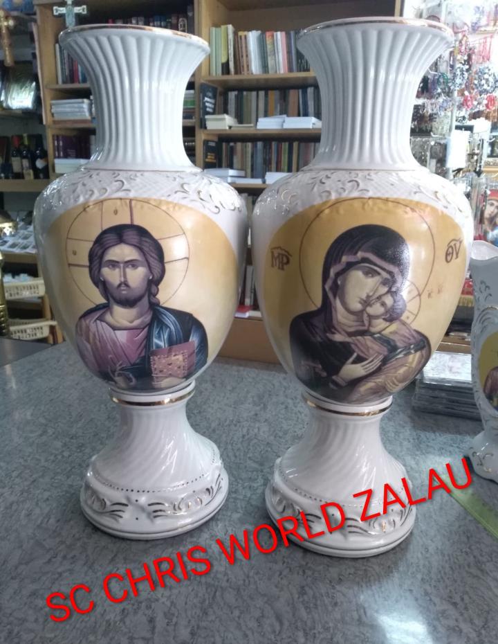 vazele sunt confectionate din portelan cu icoane bizantine, in partea opusa avand decor un peisaj.